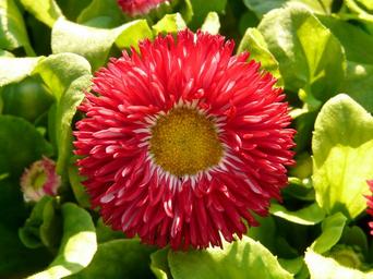 Keywords: daisy red flower blossom bloom plant color colorful cultivar rob roy close macro