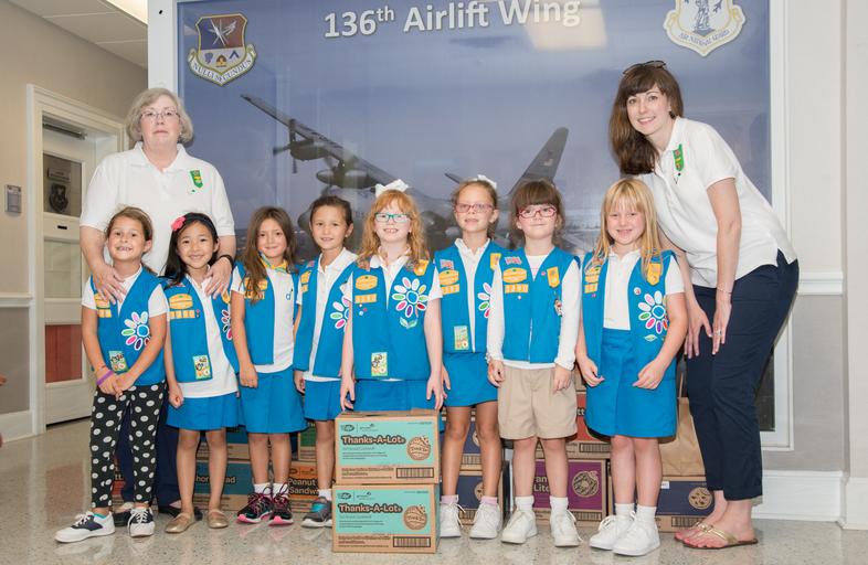 MAKE A MEME View Large Image Girl Scout Daisy Troop 3390 hosted a "Troops to Troops," cookie delivery event. The group delivered 200 boxes of cookies to Airmen of the 136th Airlift Wing, August 27, 2016, Naval Air Station Fort Worth Joint Reserve ...