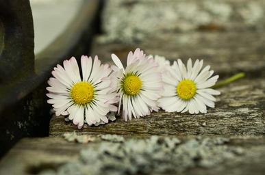 Keywords: daisy wood weathered wood close flower blossom bloom white romantic three