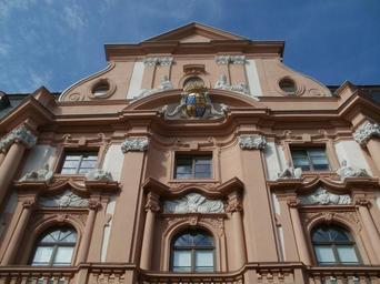 Keywords: dalberger hof mainz house front exterior gable pediment architecture coat of arms decor ornate