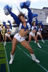 | Keywords: Dallas-001216-N-1110A-513.jpg The Dallas Cowboys Cheerleaders perform on the flight deck for the crew of USS Harry S Truman CVN 75 during the taping of the FOX NFL Pregame Show Truman is on its maiden six-month deployment to the Mediterranean Sea and Persian Gulf Die Dallas Cowboys Cheerleaders an Bord der USS Harry S Truman CVN 75 Dallas Cowboys Cheerleaders Pom pom girls ラス・カウ ーイズのチアリー ー De Dallas Cowboys Cheerleaders aan boord van het vliegdekschip USS Harry S Truman Animación Animadoras de los Dallas Cowboys Че лидинг Gooo blocking Cheerleaders for Dallas Cowboys Dallas Cowboys cheerleaders Puellae incitatrices in aëroportu navali saltationem hortatoriam faciunt http //www navy mil/view_image asp id 393 2000-12-16 Photographer's Mate 1st Class Tina M Ackerman PD-USGov-Military-Navy Women wearing shorts Dallas Cowboys Cheerleaders Women wearing crop tops and shorts Blue and white clothing female Tights in stage performance Fancy uniforms People with pom-poms |