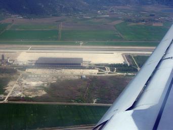 Keywords: Dalman airport.jpg en An overhead view of Dalaman Airport just before landing there Viewed from a Thomas Cook Airlines Airbus A320 from London Stansted Own JoeRoss1993 2008-03-31 Dalaman International Airport
