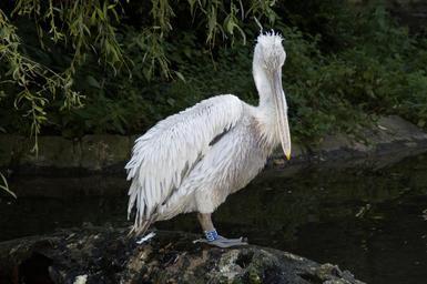 Keywords: dalmatian pelican pelikan spring dress water bird water sit zoo animal zoo ringed