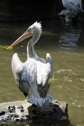 Keywords: dalmatian pelican pelikan move spring dress water bird from the rear water sit