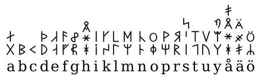 | Keywords: Dalrunor.svg en Dalecarlian runes a set of runes used in the province of Dalarna Sweden from the 16th up to the early 20th century sv Dalrunor en uppsättning runor som användes i Dalarna från 1500-talet ända fram till början av 1900-talet own Tasnu Arakun 2008-09-06 Dalecarlian runes |