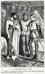| Keywords: Dalziel Brothers - Sir Walter Scott - The Talisman - Sir Kenneth before the King.png wikitable <big>This is the lossless version of the restored file File Dalziel Brothers - Sir Walter Scott - The Talisman - Sir Kenneth before the King jpg The software cannot currently thumbnail large PNGs but they can be downloaded and are necessary to allow the file to be re-edited without progressive degradation </big> Sir Kenneth before the King by the Dalziel Brothers after Sir Walter Scott's The Talisman From left to right King Richard the Lionheart Henry Neville Thomas de Vaux and Sir Kenneth Neville and de Vaux are arguably the other way around but as de Vaux steps forwards between Richard and Kenneth a moment after the quote this order seems more likely The Talisman and The Chronicles of the Canongate by Sir Walter Scott Bart Edinburgh Adam Charles Black 1887 Volume XX of Waverley Novels Centenary Edition 1887 One or more of George Dalziel 1815-1902 Edward Dalziel 1817-1905 John Dalziel c 1820-c 1855 Thomas Dalziel 1823-1906 PD-Old Image Dalziel Brothers - Sir Walter Scott - The Talisman - Sir Kenneth before the King jpg - JPEG of restored version Image Dalziel Brothers - Sir Walter Scott - The Talisman - Sir Kenneth before the King png - Archival PNG of restored version Image Dalziel Brothers - Sir Walter Scott - The Talisman - Sir Kenneth before the King unrestored jpg - JPEG of original scan Image Dalziel Brothers - Sir Walter Scott - The Talisman - Sir Kenneth before the King unrestored png - PNG of original scan Some staining in upper left and to a much lesser extent elsewhere removed or reduced by selective levels adjustments Cropped rotated levels adjusted The quote was slighty skewed compared to the title and the rest of the image - enough to damage the composition when used in an electronic medium with hard borders - so I selectively gave a very small rotation to that and used the clone brush to fill in the gaps produced Dalziel Brothers The Talisman The Crusades Richard I of England Henry Neville Thomas de Vaux |