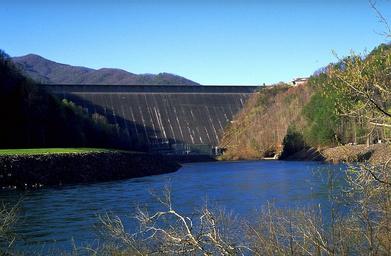 Keywords: dam tennessee fontana sky clouds architecture river water shoreline spring summer trees plants