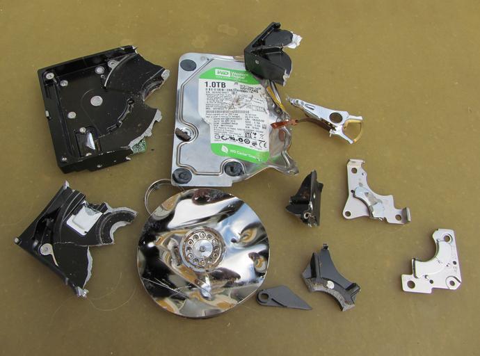 | Keywords: Damaged Hard disk drive for data protection .JPG en Hard disk drive Western Digital Green 1TB WD10EARS before recycling a PC damaged for data protection de Festplatte Western Digital Green 1TB WD10EARS eines zum Verschrotten vorgesehenen PC aus Gründen der Datensicherheit mit Axt und Vorschlaghammer zerstört own Stefan Bellini 2014-07-12 Western Digital Caviar series Damaged computer hardware Data security Files by User Stefan Bellini - Photos of electronic devices Taken with Canon PowerShot SX230 HS Cc-zero |
