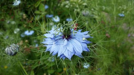 Keywords: damascus nigella flower garden green blue plants nature green background