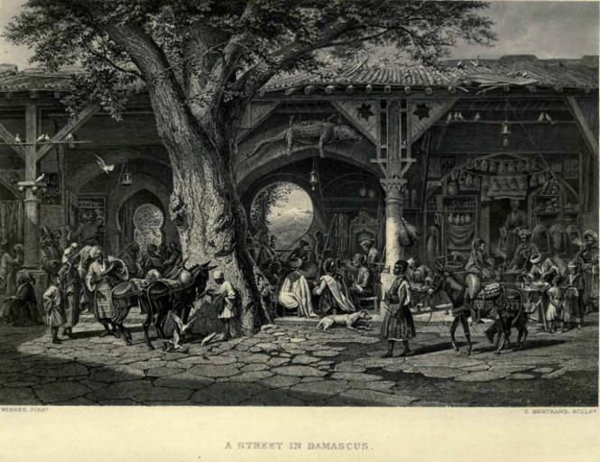| Keywords: Damascus street 1880.jpg smallcaps a street in damascus Picturesque Palestine Sinai and Egypt New York D Appleton Co 1881 “1883 C Bertrand engraving a sketch or watercolor by Carl Werner 1877 “79 PD-old-100 PD-US Damascus in the 1870s Streets in Damascus Picturesque Palestine Sinai and Egypt Carl Werner C Bertrand Donkeys in art Dogs in art Birds in art Trees in art |