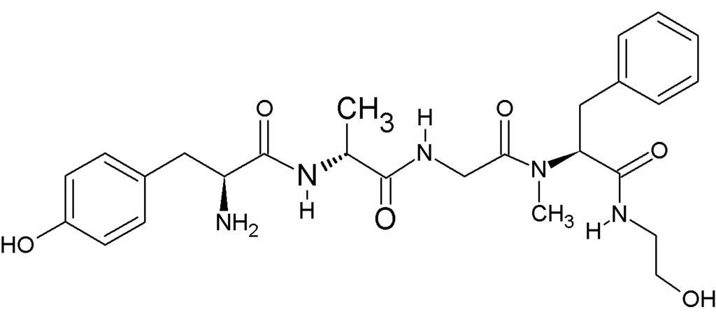 Keywords: DAMGO.png Chemical structure of DAMGO Own 01 57 14 March 2008 UTC St3vo DAMGO svg Opioids Peptides