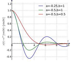 | Keywords: Damped Oscillation2.svg Damped oscillaions given by the equation <math>x t e at \left \cos bt - \frac a b \sin bt \right</math> Created using python with numpy and matplotlib toolkits cot Source code <syntaxhighlight lang python > from numpy import from matplotlib pyplot import from mpl_toolkits axisartist import time linspace 0 10 fun lambda a b t exp a t cos b t - a/b sin b t fig figure figsize 5 5 ax1 Subplot fig 111 ax1 axis right set_visible False ax1 axis left set_axisline_style - > ax1 axis top set_visible False ax1 axis bottom set_visible False ax1 axis x ax1 new_floating_axis 0 0 ax1 axis x set_axisline_style - > ax1 plot time fun - 25 1 time lw 1 5 label 'a -0 25 b 1' ax1 plot time fun - 5 1 time lw 1 5 label 'a -0 5 b 1' ax1 plot time fun - 5 5 time lw 1 5 label 'a -0 5 b 0 5' ax1 grid True ax1 text 10 05 r' t ' ax1 set_ylabel r' x t e at \left \cos bt - \frac a b \sin bt \right ' ax1 set_ylim - 5 1 25 ax1 set_yticks arange -0 4 1 25 2 ylabels for i in arange -0 4 1 25 2 if i 0 ylabels append ylabels 1f i else ylabels append ylabels ax1 set_yticklabels ylabels ax1 minorticks_on ax1 legend frameon False fig add_subplot ax1 fig savefig test png bbox_inches tight pad_inches 15 </syntaxhighlight> cob own Krishnavedala 2011-06-14 File Damped svg validSVG Cc-zero Control engineering Control theory Images with Python source code Created with Matplotlib |