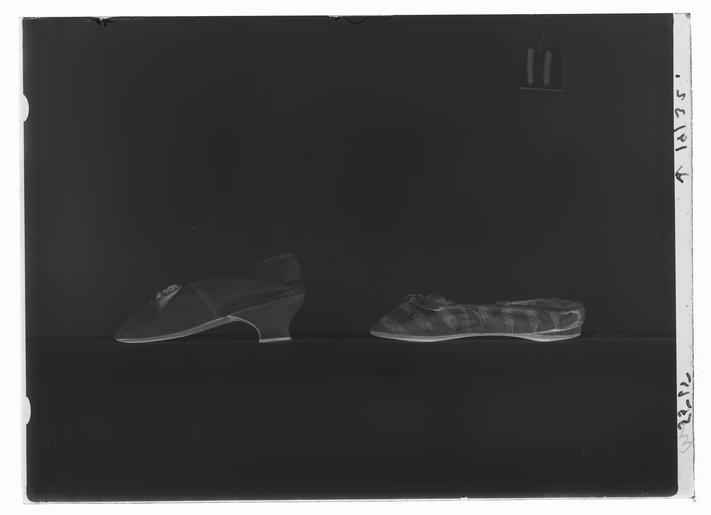| Keywords: Damsko - Livrustkammaren - 34729-negative.tif Av siden randigt i ljust beiget siden och silver - inramat av guldtrådar Skon bars av drottning Hedvig Elisabeth Charlotta 1817 Skon har mycket smal och rak läst och har spetsigt rundad tå Ovanläder och bakkappa förenas med rätt långt fram liggande sidsömmar I ringningen framtill finns en dragsko med linnesnöre att knyta Ringningen framtill är dekorerad med 2 tätt rynkade benvita sidenband Innersula och bakkappa av vitt skinnn f ö foder av beiget linne Vristband av 10 mm breda ljust beiga sidenband fastsatta som öglor vid ringningen På innersulan spår av inskription med bläck Denna sko bars första gången Hedw Elisab Charlotta 1817 På Galla Dagen då undertecknad var tjenstgörande Kammarherre Fredr Boije <br/>Sulan av läder är sliten och försedd med 3 pinnhålsstämplar 1 stämpel finns under tån en under hålfoten och en stämpel under hälen De är stjärnformiga och i diam 3 mm original caption 1817 silk Färg beige d1 - dräkt - yttermaterial material siden - gold thread - silver thread - linen Färg beige material linne - silk Färg beige material siden g 39 size mm 225 60 45 LRK Hedvig Elisabeth Charlotta av Sverige Skor ger mer - makt flärd magi 2007 place of origin original filename LN_B01964_004844 54170 inventory number LRK 17575 34729 CC0 Damsko - Livrustkammaren - 34729 tif <gallery caption Different images of same object > File Damsko - Livrustkammaren - 25027 tif </gallery> |
