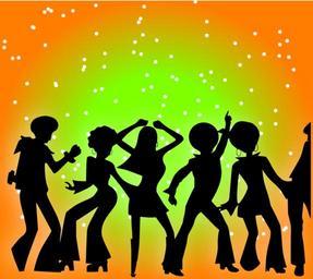 MAKE A MEME View Large Image dancers disco party black silhouette figures orange green music afros seventies flares nightclub discotheque miniskirt dancefloor retro cool funky club dance people dancing