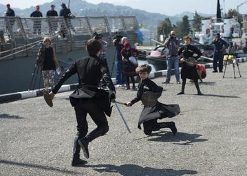 | Keywords: Dancers perform aboard USS Bulkeley 130810-N-IG780-228.jpg en Georgian boys perform a traditional dance to welcome the guided missile destroyer USS Bulkeley DDG 84 to Batumi Georgia Aug 10 2013 The Bulkeley part of the Harry S Truman Carrier Strike Group was supporting maritime security operations and theater security cooperation efforts in the U S 6th Fleet area of responsibility U S Navy photo by Mass Communication Specialist 3rd Class Shane A Jackson/Released 2013-08-10 Petty Officer 3rd Class Shane Jackson https //www dvidshub net/image/1005467 130810-N-IG780-228 2013-08-29 02 26 BATUMI GE PD-USGov-Military-Navy USS Bulkeley DDG-84 Images from DoD uploaded by Fæ |