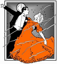 Keywords: dancing dance red dress couple vintage old-fashioned retro style 1950s antique design fashion vintage fashion clothing pose lady man woman evening clock