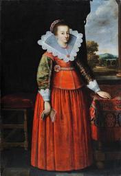 | Keywords: Danckers de Rij Portrait of a lady.jpg Artwork Creator Peeter Danckers de Rij otherdate c 1640 Oil on canvas Institution National Museum Gdańsk accession number object history credit line Probably member of the Węsierski family http //i wp pl/a/f/jpeg/28026/portret_kobiety jpeg i wp pl See below <gallery>Danckers Portret damy jpg</gallery> PD-old-100 DEFAULTSORT 1640c; Portrait of a lady Paintings by Peeter Danckers de Rij in the National Museum in Gdańsk 17th-century portrait paintings of unidentified women 1640s portrait paintings 17th-century oil portraits of standing women at full length 17th-century portrait paintings in Poland Female portraits holding gloves Females with red dresses in art Lace collars in art Portrait paintings of standing women with hands resting on tables Portrait paintings of women holding handkerchiefs Portrait paintings of women with chairs |