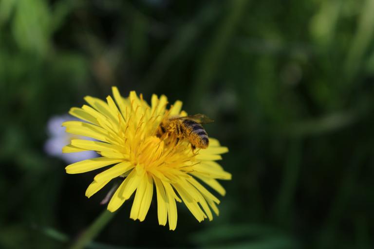 Keywords: dandelion bee blossom bloom nectar plant pointed flower spring close