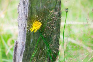Keywords: dandelion fence pile fence post blossom bloom flower meadow pasture demarcation fencing