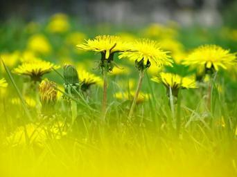 Keywords: dandelion flower blossoms meadow spring nature seasons colors yellow green close-up