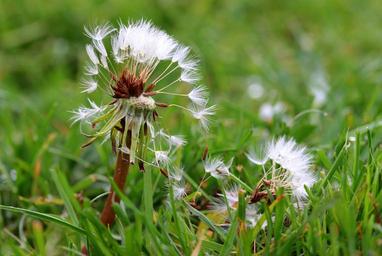 Keywords: dandelion flying seeds seeds pointed flower faded meadow grass spring flights seeds lying on the floor of fallen seeds flight nature