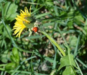 Keywords: dandelion nature ladybug flower yellow summer plant wild flower close
