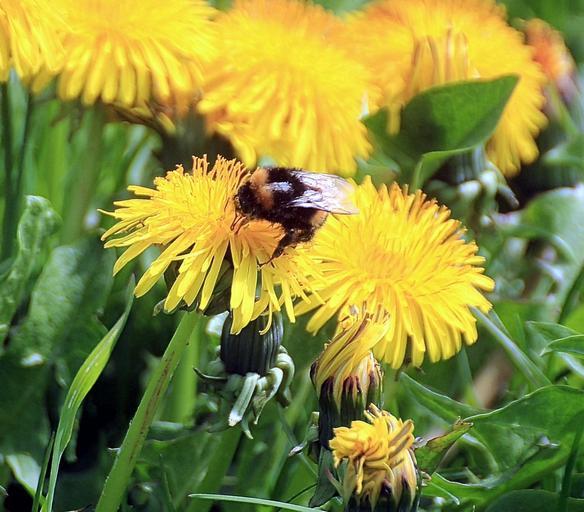 Keywords: dandelion taraxacum ruderalia taraxacum sect ruderalia weed pointed flower composites inflorescence common dandelion yellow flower hummel bombus real bees hymenoptera stechimmen