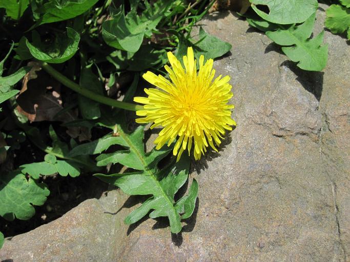 Keywords: dandelion yellow green flower nature rock stone plant blossom bloom