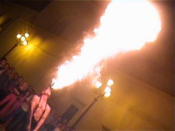 | Keywords: DangerBobBreathesfire.JPG Danger Bob Breathes fire in a street performance this flame is achieved by spitting with pressure parrafin/kerosene or ecodiesel once vaporised it burns due to a hand held wick For health puropose's it is neccesary to drink milk or better still olive oil before and after however the risk of serious injury remains high 2005-07-08 own assumed Danger Bob Fire breathing | ||||