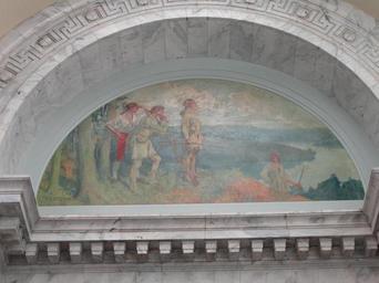 | Keywords: Daniel Boone atop Pilot Knob - Kentucky State Capitol - DSC09205.JPG en Lunette within the Kentucky State Capitol Frankfort Kentucky USA Painted by Thomas Gilbert White 1877 “1939 and now in the public domain because the artist died more than 70 years ago Daderot 2012-10-09 10 49 56 Daderot cc0 cc0 Paintings in Kentucky State Capitol Thomas Gilbert White | ||||
