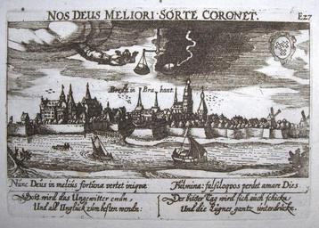 | Keywords: Daniel Meisner, 1625, Breda in Brabant.jpg Artwork Creator Daniel Meisner Intellectual creator of the Thesaurus philopoliticus and author of the emblematic text for Book I Creator Eberhard Kieser director of the etcher/engraver workshop and editor of the Thesaurus philopoliticus editions Book I 1623-1626 and Book II 1627-1631 Paulus Fürst for the Sciographia cosmica edition 1637-1638 Breda in Brabant first publication in 1625 etching copper uncoloured cm 10 14 NOS DEUS MELIORI ° SORTE CORONET Emblemata titel on top Nunc Deus in melius fortuna vertet iniqvae <br />Fulmina falsiloqvos perdet amare Dies Emblem verse in Latin below the image Gott wird das Ungewitter endn / Und all Unglück zum besten wendn <br />Der bitter Tag wird sich auch schickn / Und die Lügner gantz unterdrückn Verse transcription into German This print is numbered E27 and therefore part of the later TP-edition of Paulus Fürst called Sciographia cosmica Cartografisch Antiquariaat Edward Wells BV Ermelo Netherlands ; Galleryhttp //www edward-wells nl; Infohttp //www edward-wells nl/catalogus/index php productID 2556 categoryID 209 view 60; Pichttp //www edward-wells nl/catalogus/products_pictures/large_3/2556 jpg PD-Art-100 Other versions Thesaurus Philopoliticus Engravings of cities 1625 engravings History of Breda |