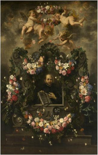 | Keywords: Daniël Seghers and Cornelis Schut (I) - Saint Ignatius in a cartouche with flowers and cherubs.jpg Artwork title Saint Ignatius in a cartouche with flowers and cherubs oil canvas cm 190 299 Koninklijk Museum voor Schone Kunsten The cartouche was formerly attributed to Rubens but now to Cornelis Schut The angels have been attributed to Jan van Balen Object history http //www lukasweb be/nl/foto/heilige-ignatius-van-loyola-in-een-bloemenkrans Inscription centre AD MAIOREM DEI GLORIAM/ REGULAE SOCIETATIS IESU c 1643 Creator Daniël Seghers Creator Jan van Balen Creator Cornelis Schut Copyright expired PD-Art Other versions PD-old-100 Notes reflist Garland paintings by Daniël Seghers Garland paintings by Cornelis Schut Jan van Balen Flemish Baroque paintings in the Royal Museum of Fine Arts Antwerp Seg Paintings by two artists |