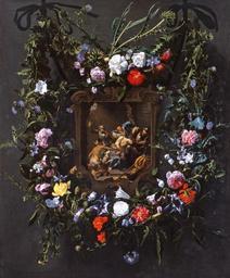 | Keywords: Daniël Seghers and Simon de Vos - A Garland of Flowers Surrounding a Mocking of Christ.jpg Artwork creator Daniel Seghers and creator Simon de Vos cartouche en A Garland of Flowers Surrounding a Mocking of Christ c 1643 http //nasher duke edu/hdyl/guides/paintings/ oil canvas cm 130 8 106 7 Nasher Museum of Art object history PD-old-100 Other versions Garland paintings by Daniël Seghers Nasher Museum of Art History paintings by Simon de Vos Mocking of Christ | ||||
