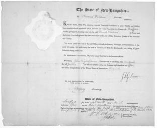 | Keywords: Daniel Waldron Justice of the Peace.jpg en Order of John Taylor Gilman Governor of New Hampshire naming Daniel Waldron a Justice of the Peace for Strafford County New Hampshire 1815 The Library of Congress Washington D C http //memory loc gov/cgi-bin/query/r ammem/rbpe field DOCID+ lit rbpe0910140a http //memory loc gov/rbc/rbpe/rbpe09/rbpe091/0910140a/001dr jpg State of New Hampshire John Taylor Gilman Governor 1815 History of New Hampshire John Taylor Gilman PD-old | ||||