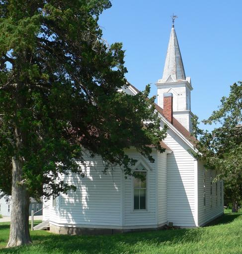 | Keywords: Dannevirke church from NE.JPG Elba in w Howard County Nebraska ; seen from the northeast The church was built in Gothic Revival style in 1906 With the community hall on the southwest corner of the intersection it constitutes the Dannevirke Danish Lutheran Church and Community Hall which property is listed in the National Register of Historic Places The red cedar trees in the photo were planted in 1907 own Ammodramus 2010-05-29 Pictures by Ammodramus Taken with Panasonic Lumix DMC-FZ20 Dannevirke Danish Lutheran Church Trees planted in 1907 |