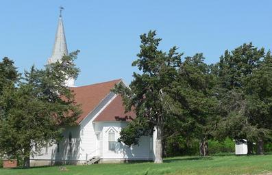 | Keywords: Dannevirke church from SE 2.JPG Elba in w Howard County Nebraska ; seen from the southeast The church was built in Gothic Revival style in 1906 With the community hall on the southwest corner of the intersection it constitutes the Dannevirke Danish Lutheran Church and Community Hall which property is listed in the National Register of Historic Places The red cedar trees in the photo were planted in 1907 own Ammodramus 2010-05-29 Pictures by Ammodramus Taken with Panasonic Lumix DMC-FZ20 Dannevirke Danish Lutheran Church Trees planted in 1907 |