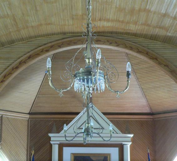 Keywords: Dannevirke church interior chandelier.JPG Elba in w Howard County Nebraska The church was built in Gothic Revival style in 1906 With the community hall on the southwest corner of the intersection it constitutes the Dannevirke Danish Lutheran Church and Community Hall which property is listed in the National Register of Historic Places The camera is facing eastward; the white triangular object in the lower portion of the photo is the top of the altar own Ammodramus 2010-05-29 Pictures by Ammodramus Taken with Panasonic Lumix DMC-FZ20 Dannevirke Danish Lutheran Church Electric chandeliers in the United States |