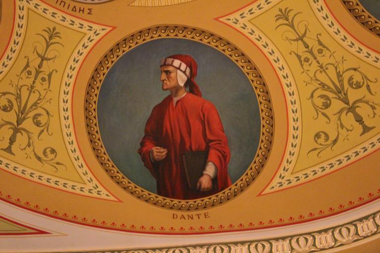 Keywords: Dante, at the Ceiling of the Apollon Theater.JPG en Painting at the Ceiling of the Apollon Theater in Ermoupolis 2015-04-24 16 01 33 own Zacharias Mitzelos other versions cc-zero Uploaded with UploadWizard Apollon Theatre Syros