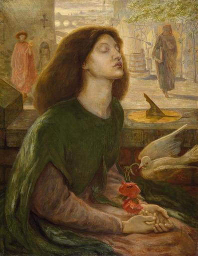 | Keywords: Dante Gabriel Rossetti and Ford Madox Brown - Beata Beatrix.jpg Artwork Creator Dante Gabriel Rossetti Creator Ford Madox Brown en The a young woman is shown seated and half length at the moment of suspension between life and death A bird drops it's red poppy between her open hands In the background Dante is shown looking across to the figure of Love The frame has four incised roundels one on each side 1877 oil on canvas cm 86 4 68 2 Institution Birmingham Museum and Art Gallery Fine Art Paintings and Sculpture place of discovery object history exhibition history credit line Purchased 1891 en One of several versions of this subject this painting was unfinished at the time of Rossetti's death and the background was completed by Ford Madox Brown The painting is a personal expression of Rossetti's love for his deceased wife Elizabeth Siddal seen through the writings of Dante the subject is taken from 'La Vita Nuova' In this version the poppies are red perhaps an explicit reference to opium-derived laudanum accession number 1891P25 place of creation http //www bmagic org uk/objects/1891P25 Birmingham Museum and Art Gallery http //www bmagprints org uk/image/331222/dante-gabriel-rossetti-ford-madox-brown-beata-beatrix Birmingham Museum and Art Gallery Prints <br /> http //www preraphaelites org/the-collection/1891P25/beata-beatrix/ Pre-Raphaelite Online Resource Custom license marker 2015 11 09 PD-old-auto-1923 1893 Uploaded with UploadWizard Beata Beatrix Ford Madox Brown Paintings by two artists 1877 oil on canvas paintings in the United Kingdom Paintings in the Birmingham Museum and Art Gallery |