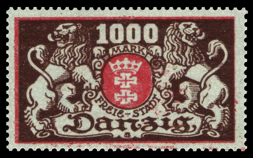 | Keywords: Danzig 1923 121 großes Staatswappen.jpg / Briefmarkenbeschreibung Dauermarkenserie Definitive stamp series Ausgabepreis 1000 Mark First Day of Issue / Erstausgabetag 24 Januar 1923 Michel-Katalog-Nr 121 Danzig scanned by NobbiP 2011-09-30 Buchholz PD-old-auto-1996 1944 PL <gallery> File Danzig 1923 119 großes Staatswappen jpg 1923 119 File Danzig 1923 120 großes Staatswappen jpg 1923 120 File Danzig 1923 122 großes Staatswappen jpg 1923 122 </gallery> Philately großes Staatswappen mit 2 flankierenden Löwen Nennwert 1000 Mark 1923-01-24 Buchholz 768 100 Buchdruck 121 Danzig Coats of arms of Gdańsk on stamps 1923 stamps of the Free City of Danzig German stamps review keep Max Buchholz |