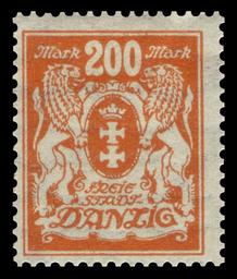 | Keywords: Danzig 1923 142 großes Staatswappen.jpg / Briefmarkenbeschreibung Dauermarkenserie Definitive stamp series Ausgabepreis 200 Mark First Day of Issue / Erstausgabetag 20 Juli 1923 Michel-Katalog-Nr 142 Danzig scanned by NobbiP 2011-09-30 Buchholz PD-old-auto-1996 1944 PL German stamps review keep <gallery> File Danzig 1923 138 Wappen jpg 1923 138 File Danzig 1923 139 großes Staatswappen jpg 1923 139 File Danzig 1923 140 Wappen jpg 1923 140 File Danzig 1923 141 großes Staatswappen jpg 1923 141 </gallery> Philately großes Staatswappen mit 2 flankierenden Löwen Nennwert 200 Mark 1923-07-20 Buchholz 2 465 300 Buchdruck 142 Danzig Coats of arms of Gdańsk on stamps 1923 stamps of the Free City of Danzig Max Buchholz |