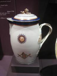 | Keywords: DAR pot - IMG 8688.JPG Flagon porcelain with polychrome enamel decorations of Masonic symbols; Chinese circa 1800 Pottery exhibited in the DAR Museum National Society Daughters of the American Revolution 1776 D Street NW Washington DC USA I took this photograph 2011-01-18 13 45 00 Daderot Public domain Pottery in the DAR Museum Chinese export porcelain Masonic artifacts |