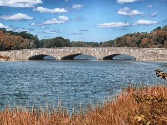Keywords: darien connecticut bridge stone landscape scenic fall autumn sky clouds forest trees river water nature outside country countryside