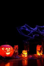 Keywords: dark decoration fall glow glowing halloween illuminated lantern leaves lights orange pumpkin scary season spooky trick