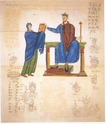 | Keywords: Darstellung Mieszkos und Mathildes von Schwaben.jpg Darstellung Mieszkos II und Mathildes von Schwaben auf dem Widmungsbild des Liber de divinis officiis; St Gallen erstes Viertel 11 Jahrhundert Düsseldorf Universitäts- und Landesbibliothek Ms C 91 verschollen fol 3r Scan aus Buch Christoph Stiegemann und Martin Kroker Hrsg Für Königtum und Himmelreich 1000 Jahre Bischof Meinwerk von Paderborn Regensburg 2009 S 133 between 1000 1025 author <br /> PD-Art Original upload log de wikipedia Saibo CommonsHelper page de wikipedia Darstellung_Mieszkos_und_Mathildes_von_Schwaben jpg 2010-01-29 10 06 Armin P 1024×1200× 202937 bytes <nowiki> Information Darstellung Mieszkos II und Mathildes von Schwaben auf dem Widmungsbild des Liber de divinis officiis; St Gallen erstes Viertel 11 Jahrhundert Düsseldorf Universitäts- und Landesbibliothek Ms C 91 verschollen fol </nowiki> Mathilde von Schwaben Konradiner Mieszko II of Poland in miniature |