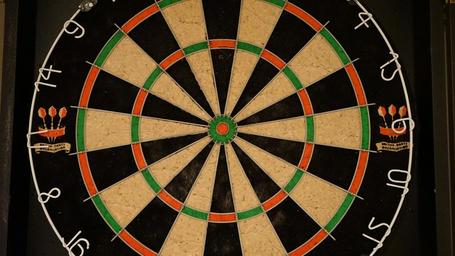 Keywords: dart dart board sports bullseye board target center game accuracy aim score shot leisure skill luck win aiming winner black circle red accurate dartboard arrow competition