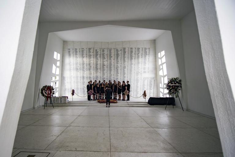 Keywords: Dartmouth College Sing Dynasty A Capella Group performs "Amazing Grace" aboard USS Arizona Memorial during an Interfaith Prayer service. (31111832750).jpg PEARL HARBOR Dec 6 2016 Dartmouth College Sing Dynasty A Capella Group from Hanover New Hampshire performs Amazing Grace aboard USS Arizona Memorial during an Interfaith Prayer service and Floral Tribute aboard the USS Arizona Memorial The event allowed religious leaders from the U S and Japan to engage in prayer to honor the fallen service members at the USS Arizona Memorial Dec 7 2016 marks the 75th anniversary of the attacks on Pearl Harbor and Oahu Since Dec 7 1941 the U S and Japan have endured more than 70 years of continued peace a cornerstone of security and prosperity in the Indo-Asia-Pacific region As a Pacific nation the U S is committed to continue its responsibility of protecting the Pacific sea-lanes advancing international ideals and relationships well as delivering security influence and responsiveness in the region U S Navy Photo by Petty Officer 2nd Class Katarzyna Kobiljak/Released 161206-N-YW024-013 Join the conversation http //www navy mil/viewGallery asp www navy mil/viewGallery asp http //www facebook com/USNavy www facebook com/USNavy http //www twitter com/USNavy www twitter com/USNavy http //navylive dodlive mil navylive dodlive mil http //pinterest com pinterest com https //plus google com plus google com https //www flickr com/photos/usnavy/31111832750/ Dartmouth College Sing Dynasty A Capella Group performs Amazing Grace aboard USS Arizona Memorial during an Interfaith Prayer service 2016-12-07 07 17 https //www flickr com/people/56594044 N06 Official U S Navy Page from United States of America Petty Officer 2nd Class Katarzyna Kobiljak/Navy Public Affairs Support Element Detachment Hawaii Attribution License IPTC Caption-Abstract U S Navy Photo PD-USGov-Military-Navy Official U S Navy Imagery https //flickr com/photos/56594044 N06/31111832750 2016-12-07 19 31 31 cc-by-2 0 161206-N-YW024-013 Navy 75th anniversary of Pearl Harbor attacks Dartmouth College people December 2016 in Hawaii Files from the U S Navy Flickr stream Musical groups from the United States Photographs taken on 2016-12-06 Taken with Nikon D5 USS Arizona Memorial shrine room