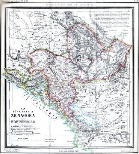 | Keywords: Das Fürstentum Montenegro im Jahre 1862.jpg Das Fürstentum Montenegro im Jahre 1862 Principatul Muntenegru în anul 1862 Zeitschrift der Gesellschaft für Erdkunde zu Berlin 1862 Creator Heinrich Kiepert PD-old-100 Maps of the history of Montenegro in modern times Old maps of Montenegro Heinrich Kiepert |