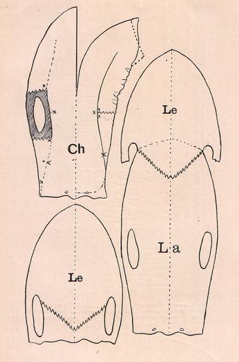 | Keywords: Das Kürschner-Handwerk, II. Auflage 3. Teil, S. 75. Verarbeitung der Sealfelle (2).jpg Verarbeitung von Sealfell Haarseehunde das Oberhaar ausgerupft Fig Ch zeigt wie ein Fell geschnitten wird um aus demselben einen grossen Chalkragen wie beisw für Pelze notwendig ist herzustellen Die flache Flossenpartie ist herausgeschnitten und die notwendigen Schnitte angedeutet linke Seite Die rechte Seite zeigt diese Schnitte genäht Fig La und Le bringen zur Ansicht wie ein Fell durch AufÂsetzen eines Pumpfes verlängert werden kann Dieser Fall wird bei der Herstellung von langen Mänteln oft notwendig Die günstigste Verbindung zwischen zwei Fellen ist wie angegeben Pumpf gegen die Mitte des Felles Auf diese Weise erreicht man eine Verbindung die in Haar gesehen denselben žSchein hat Vor dem Abzwecken ist das Leder stets gut mit dem Streckholz auszureiben Fertige Sealsachen sind vor dem Füttern immer gut zu läutern und hierauf mit dem Strich einzustreichen Die VerwenÂdung der Abfälle richtet sich nach der Form des herzustellenden Gegenstandes Zu Muffen beispw wählt man ein regelmässiges grösseres Stück für die Mitte und füllt dieses dann mit kleineren Stücken auf die nötige Breite aus Die Flossenstücken werden chevronartig zusammengesetzt und dann auch zu grösseren GegenÂständen wie Jaketts oder Cravaten und Baretts verwendet oder wenn dieselben sehr gering sind zu Aermelfuttern Die besten Gegenstãnde lassen sich von den aus der Mitte der Felle ausÂfallenden Stücken herstellen Die langen Streifen wie auch die kurzen breiten Stücken werden je für sich sortirt und verarbeitet Zunächst werden grössere Vierecke zusammengestellt die dann wieder beispw zu Pelzfuttern vereinigt werden Die ãussersten Pumpfstücke werden zuweilen auch quer d h die Haare auseiÂnanderlaufend wie polnischer Besatz verarbeitet Paul Larisch und Josef Schmid Das Kürschner-Handwerk Eine gewerbliche Monographie II Auflage Teil III 1910 S 75 1910 Larisch/Schmid PD-old <gallery>Das Kürschner-Handwerk II Auflage 3 Teil S 73-74 Verarbeitung der Sealfelle jpg Teil 1 des Artikels</gallery> Das Kürschner-Handwerk Paul Larisch und Joseph Schmid II Auflage S 75 Seal fur-skin manufacturing |