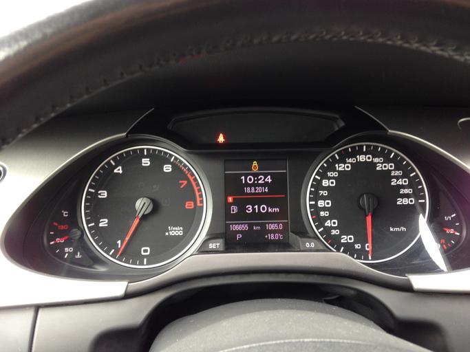 Keywords: dashboard audi audi a4 black speedometer tachometer arrows lightbulb time scoreboard indicators average speed mileage counters